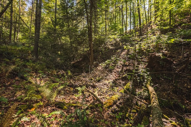 sites that could reveal beautiful views with some tree clearing. A trail leads